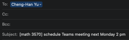 Welcome to set up a meeting with your TA via Teams.