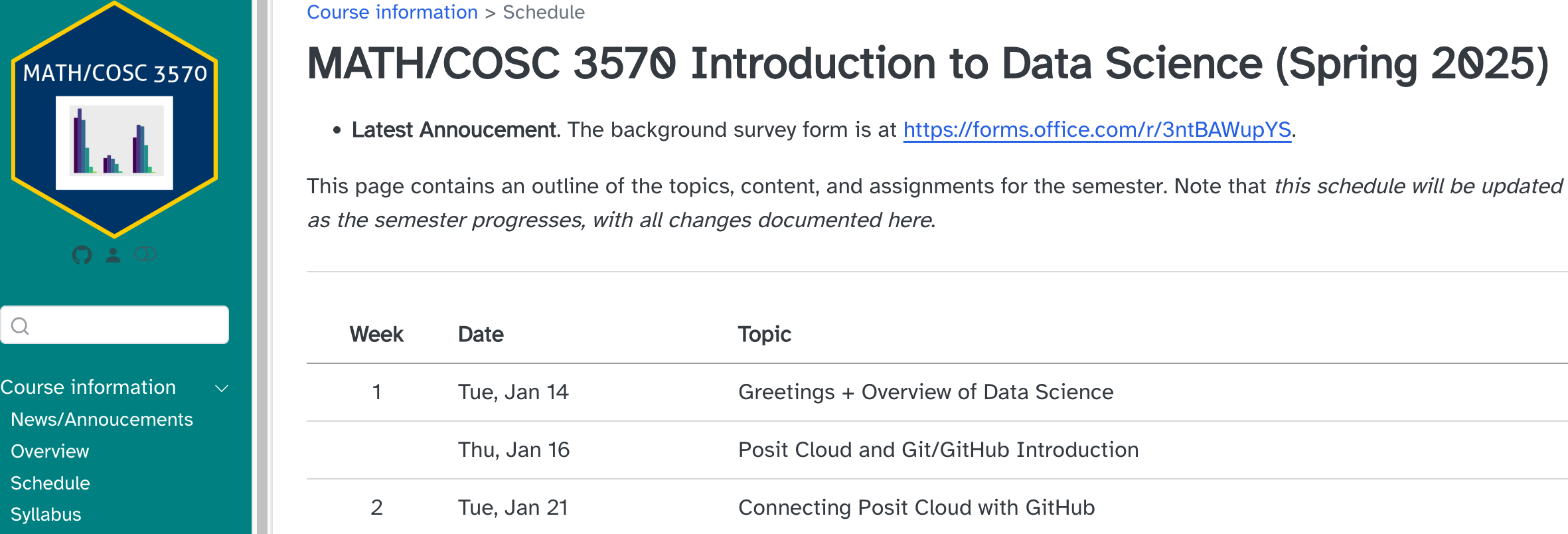 π To make sure everyone is on the same page, first couple of weeks is about learning R and Python syntax. After spring break, we focus on modeling and machine learning methods.