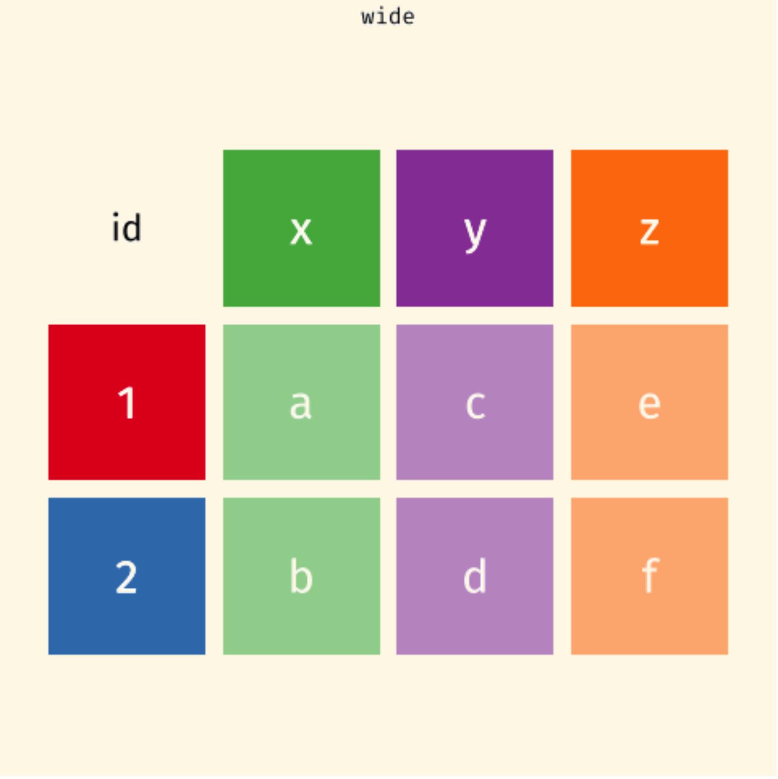 pivot_wider() ``widens” data, adding more columns and decreasing the number of rows.