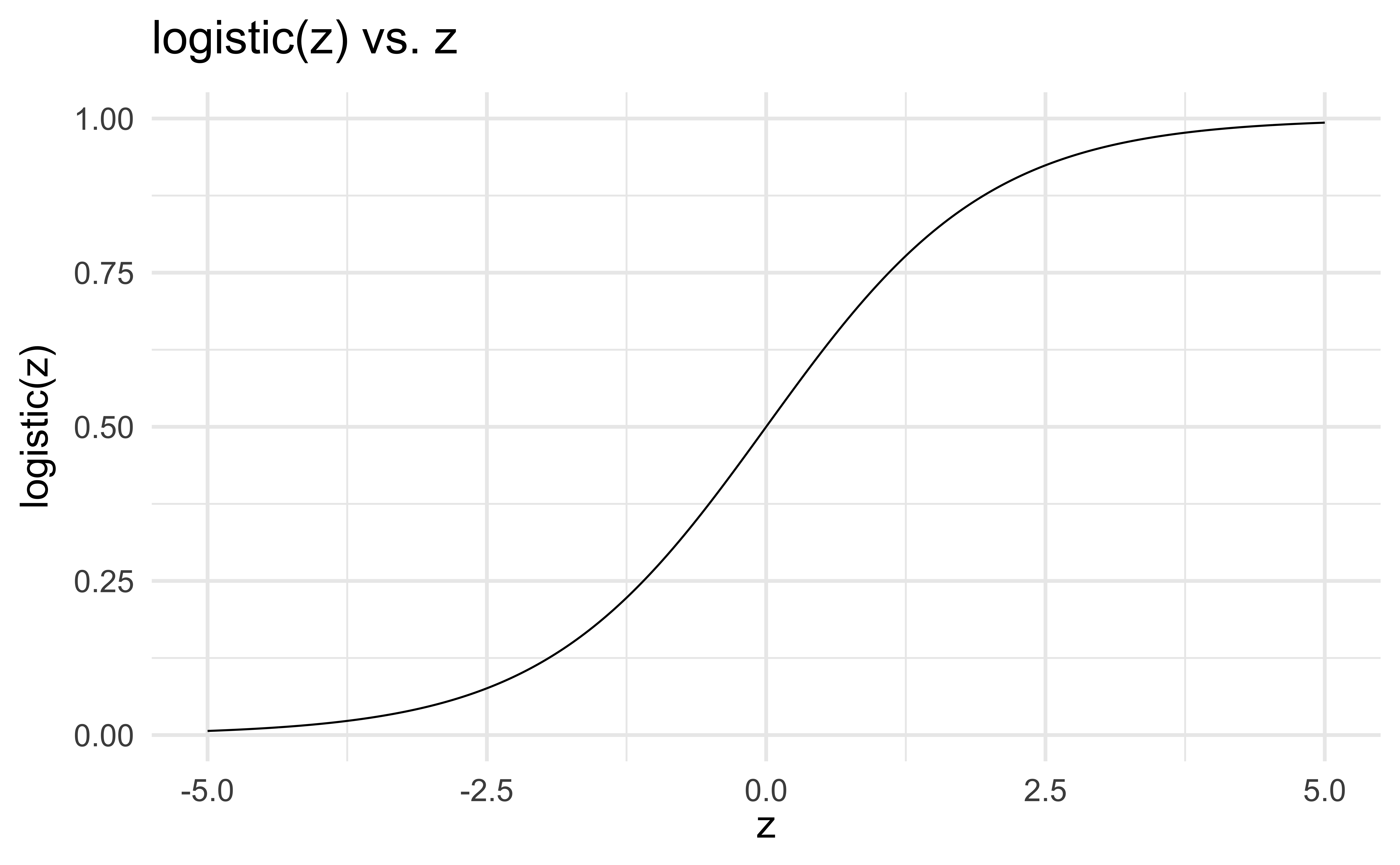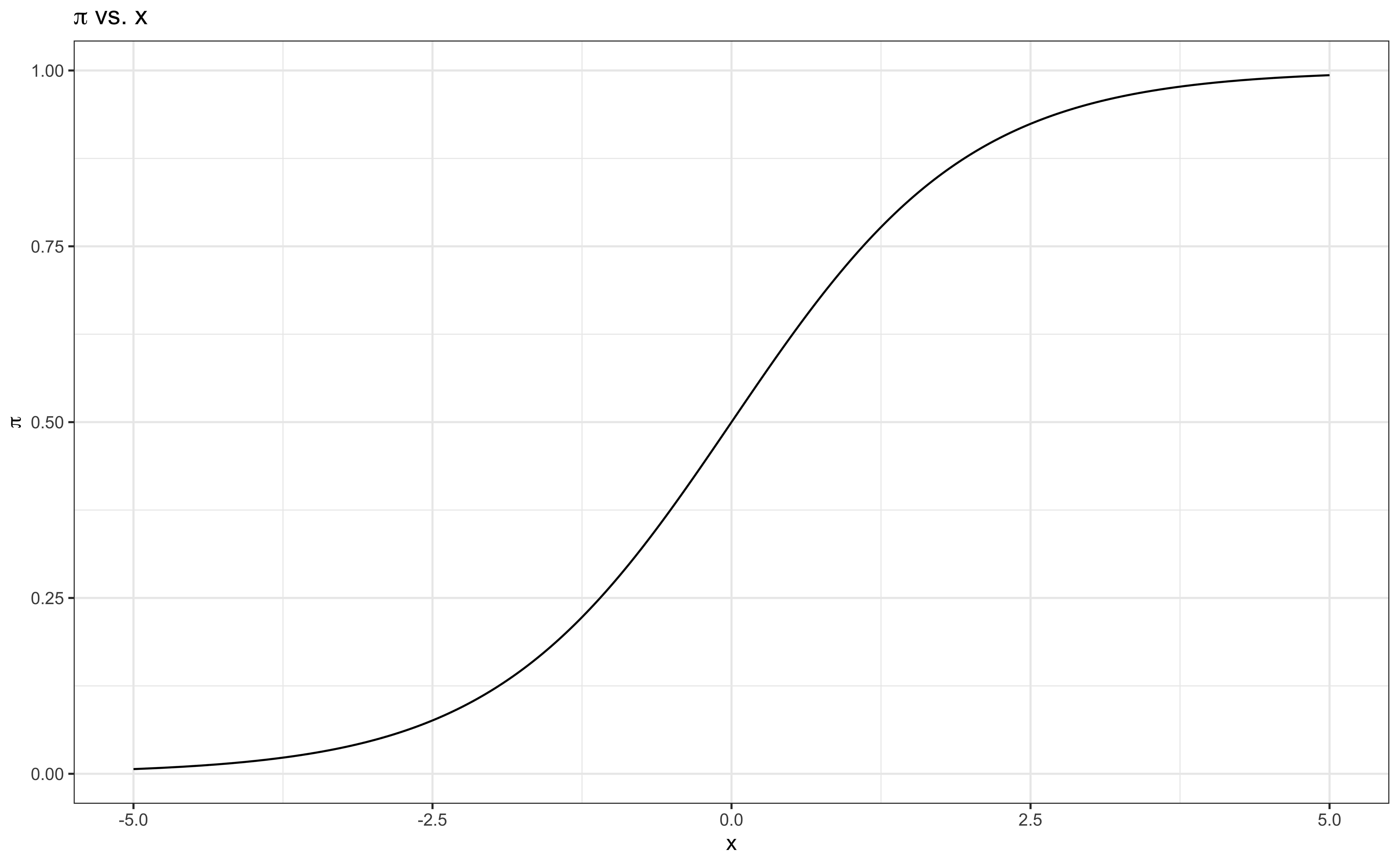 \[\pi(x) = \frac{1}{1+\exp(-(\beta_0 + \beta_1x))}\]