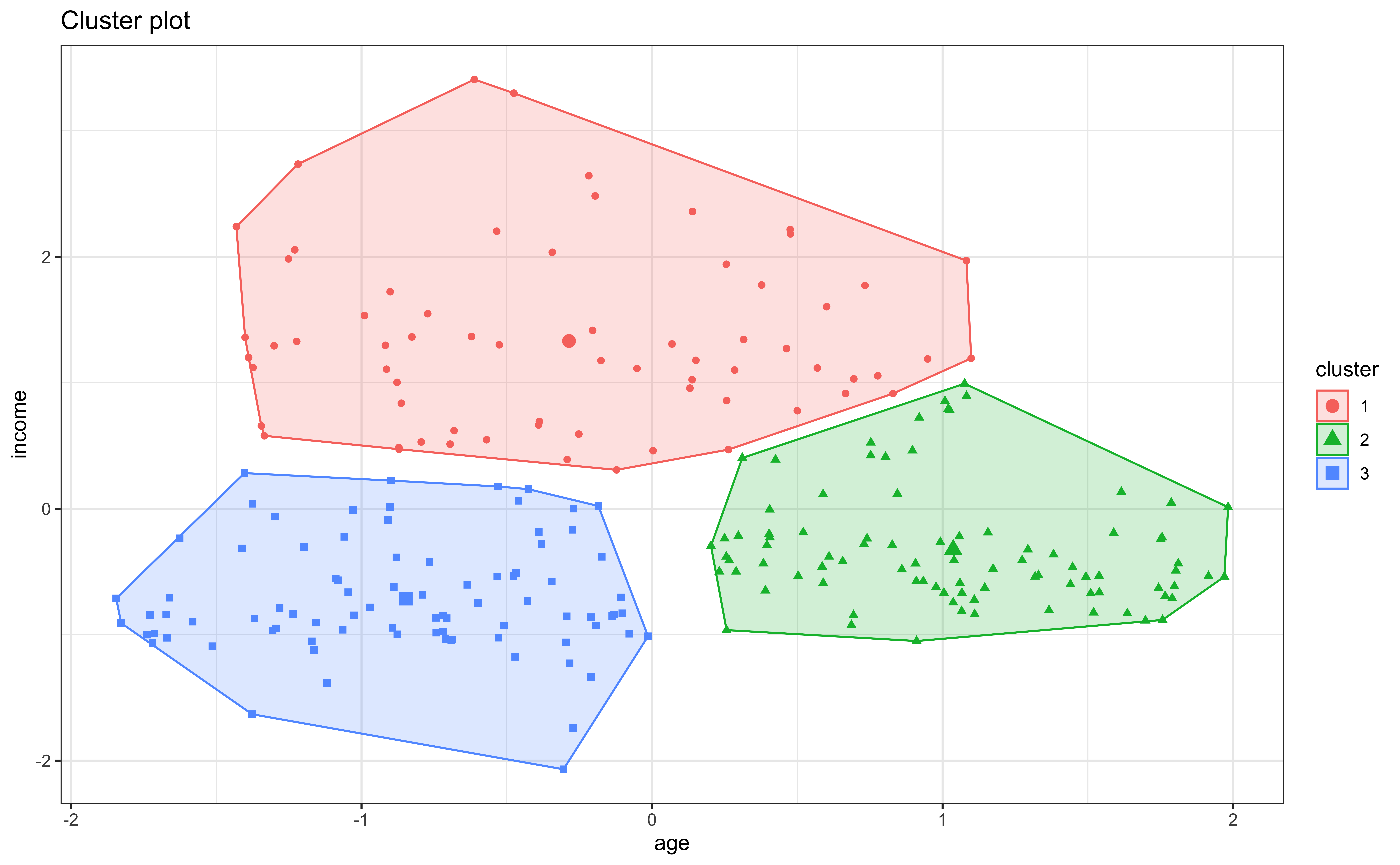[6] "betweenss" "size" "iter" "ifault" kmeans()kclust$centers age income